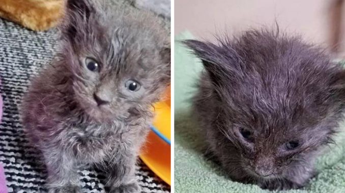 Empat anak kucing muda dibawa ke tempat perlindungan di Massachusetts awal bulan lalu; tiga daripada mereka dijangka bertahan, tetapi seekor anak kucing kelabu kecil sangat sakit.