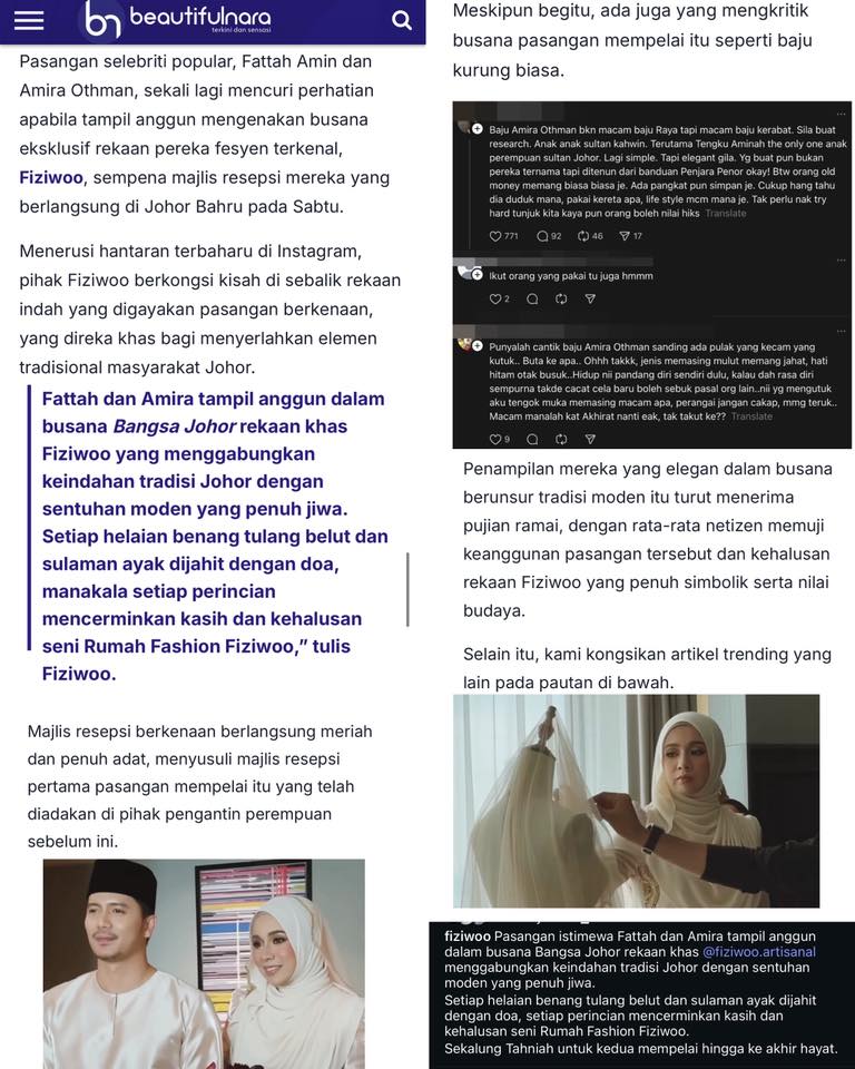 Baju Resepsi Fatah Amira dikritik, Sekali Pereka fesyen terkenal bagi kata2 Padu buat netlzen