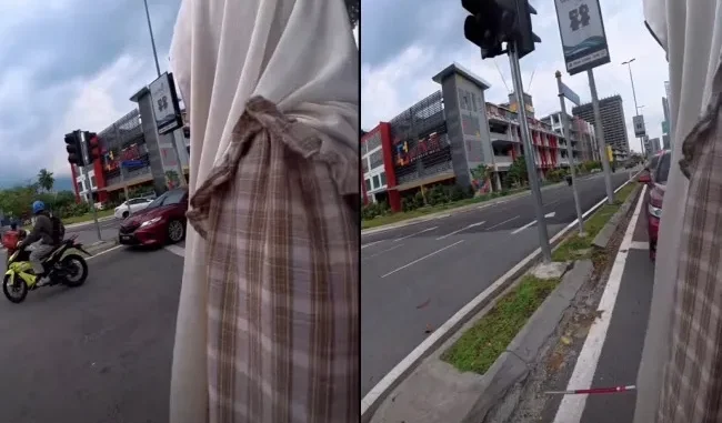 Menerusi TikTok, pengguna yang menggunakan nama @braderhelmetpurple, dilihat sedang menunggang motosikalnya secara santai sebelum bertindak memberhentikan motosikalnya di tepi jalan selepas menyedari terdapat seorang wanita yang berdiri agak lama di baju jalan.
