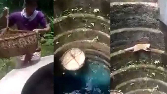 Remaja tersebut cuba menghvlurkan b4ldi menggunakan tali dengan mengharapkan kucing tersebut masuk ke dalam baldi itu. Namun apa yang terj4di kucing itu membuat percvbaan kali kedua untuk keluar dan lomp4tan itu berjaya keluar dari tel4ga tersebut.
