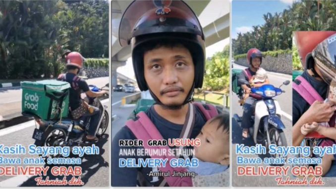 Kisah rider Grab menggendong anak dalam cuaca pa’nas tu’lar setelah dikongsikan oleh seorang pengguna TikTok yang dikenali sebagai @abamskhai.