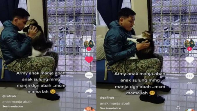 “Kalau abah dia nak pegi kerja kena cium, timang-timang dulu,” begitulah luahan hati pemilik seekor kucing kampung yang diberi nama Army.