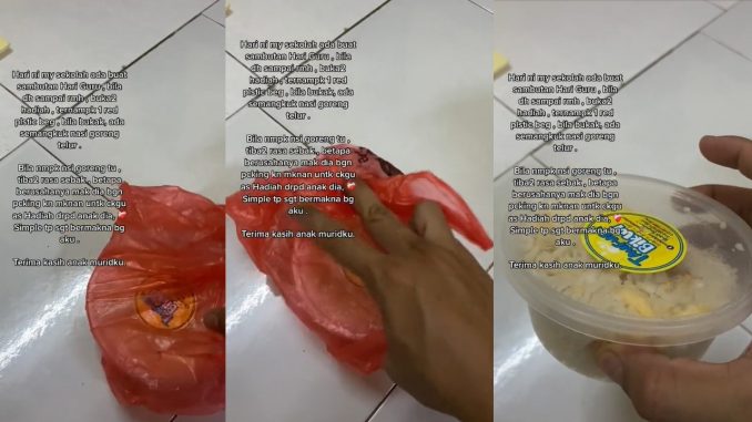 “Bila nampak nasi goreng tu, tiba-tiba rasa $ebak. Betapa berusahanya mak dia bangun packing makanan untuk cikgu, hadiah daripada anak dia.