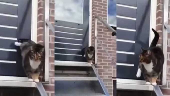 Menerusi satu video tular di laman inst4gram, dapat dilihat seekor kucing berada di hadapan pintu di sebuah rumah.