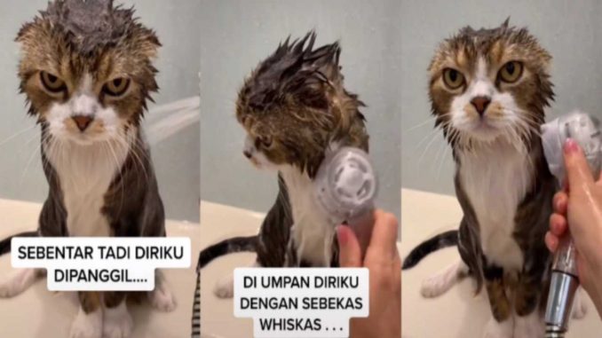 [VIDEO] ‘Ku fikirkan makanan, rupanya di umpan,’ Reaksi Kucing Pasrah Dimandikan Buat Netizen Terhibur
