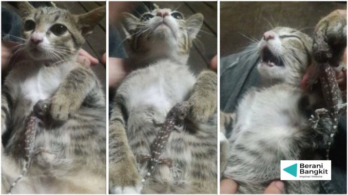 “Tolong!! Aku Digigit Tokek…” – Lucu, Expresi Wajah Kucing Nakal Ini Ketika Digigit Cicak Tokek