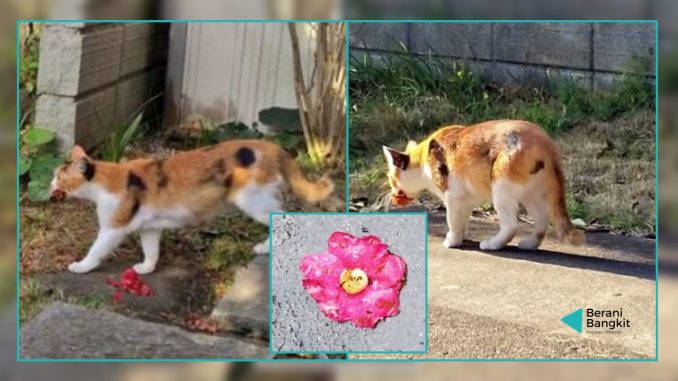 Kucing romantik hantar bunga kamelia depan pintu individu terpilih 5 tahun berturut-turut. Untunglah!