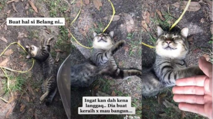 Pada awalnya ramai yang menyangkakan kucing itu dilanggar oleh kereta namun itu semua hanyalah lakonan kepura-puraan semata-mata. Netizen juga turut sama terhibur melihat aksi kucing yang kekal terbaring kaku walaupun diusik oleh lelaki ini.
