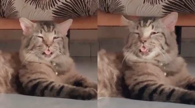 Melalui rakaman, kucingnya yang mungkin keletihan tetapi lidahnya yang terkeluar mencetuskan orang ramai tercuit hati dengan gelagat comelnya ini.
