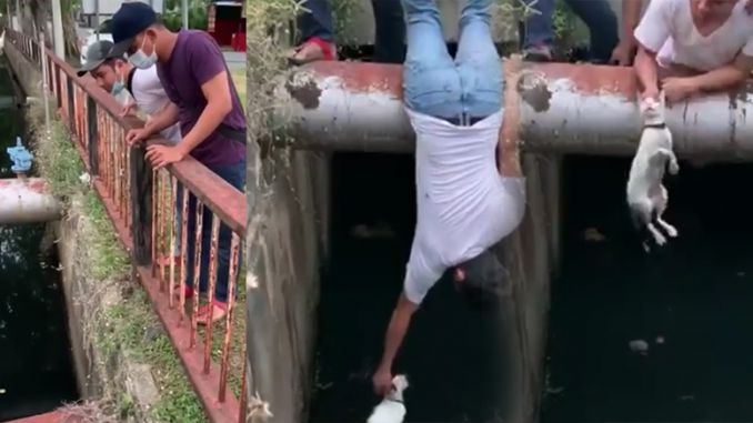 Satu perkongsian video di laman sosial media fesbuk ini telah menarik perhatian netizen. Beberapa orang pemuda yang lalu disebuah longkah besar selepas makan2 dikedai telah ternampak kucing ini sedang berdiri cuba menyelamatkan diri. Mungkin kerana tidak tahu bagaimana cara untuk menyelamatkan diri, kucing ini hanya duduk di tempat yang agak tinggi dilongkang tersebut sambil mengiau menjerit meminta tolong. Nasib baik beberapa orang pemuda yang baik hati ini telah terdengar dan ternampak kucing itu.