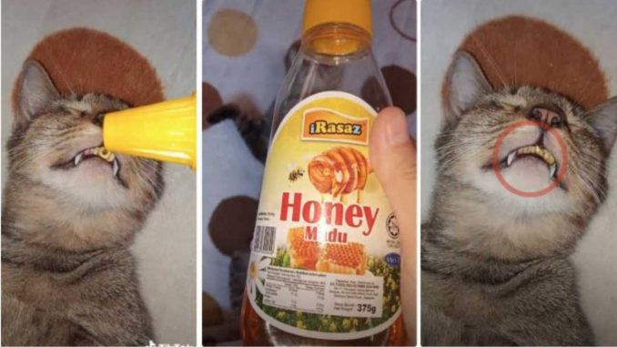 Sekadar gurauan manja kepada kucing kesayangan yang diberi nama dudun, die memberi sedikit madu ke dalam mulut dudun apabila dudun sedang tidur. Yela kn tidur dah macam manusia dah nampaknya. Hihihiihi.