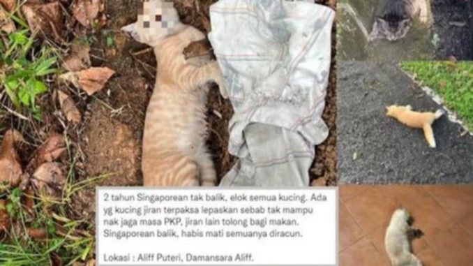 “Dua tahun Singaporean tak balik, elok semua kucing. Ada jiran yang terpaksa lepaskan kucing sebab tak mampu nak jaga masa PKP, jiran lain tolong bagi makan. Singaporean balik, habis m4ti semuanya diracvn,” demikian ciapan pelayar berkenaan.