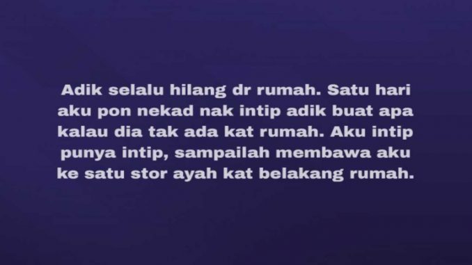 Kami ta̸k brkemampuan tp adik nak sgt ma̸suk asra̸ma. Malam tu kami neka̸d intai adik kat dlm sto̸r. Menitik air mata tengo̸k ape̸ yg ade dlm stor tu.
