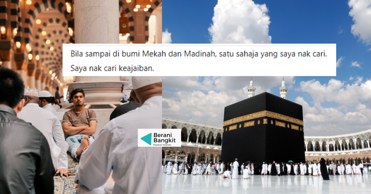 “Bila sampai di bumi Mekah dan Madinah, satu sahaja yang saya nak cari. Saya nak cari keajaiban. Kerana, tanah ini adalah tanah suci. Ada rumah Allah. Ada rumah Rasulullah SAW.” – tulis beliau.