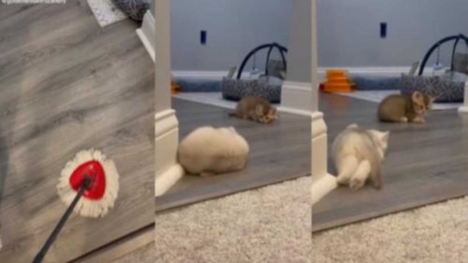 Biasanya setiap kali pemilik kucing mengemaskan rumah, kucing memang cukup pantang melihatnya dan pasti akan turut sama menganggu. Macam gelagat kucing ini yang dilihat berkelakuan aneh dan lucu sebaik sahaja pemiliknya selesai mop lantai di rumah.