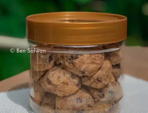 Rasa biskut yang dibuat ikut resepi Ben akan hasilkan biskut yang sedikit berderai di dalam mulut tapi rangup di permukaan luar. Dan manis-manis buah. Gitu. Kuantiti untuk 25-27 ketul biskut famous amos. Cawan digunakan ialah cawan penyukat metrik 250ml.