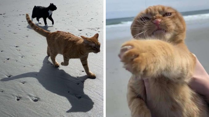 Labu kelihatan berseronok meneroka pantai dan berlari-lari di dalam pasir – sehingga angin bertiup kencang. Ketika itulah keluarganya mendapati bahawa kucing petualang itu tidak menyukai angin.
