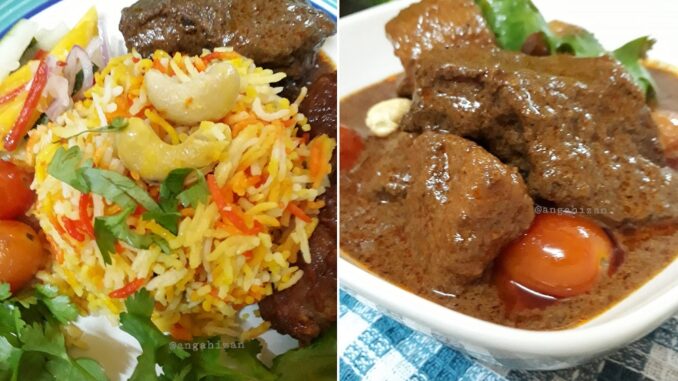 1. Panaskan minyak, tumis bahan kisar sehingga naik bau dan masukkan rempah beriani dan cili kisar.