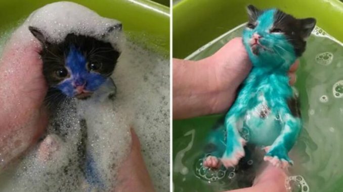 Dua ekor anak kucing dinamakan Smurf dan Shrek oleh kakitangan di pusat penyelamat kucing selepas ditemui dengan kejam “berwarna” dengan penanda.