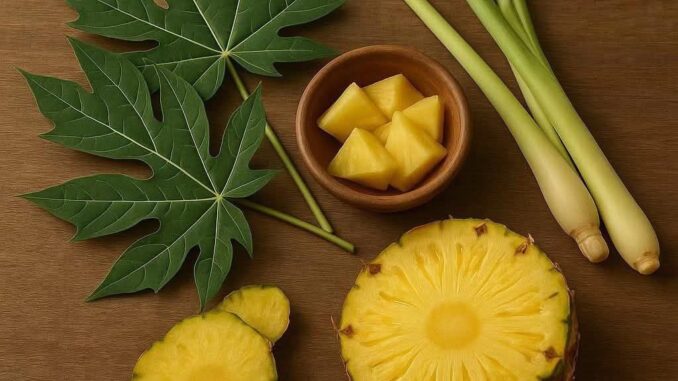 Ramai orang tidak sedar bahawa herba tradisional sebenarnya mempunyai kemampuan semula jadi untuk membantu mencuci darah kotor, membuang toksin dan menyegarkan tubuh. Salah satu kombinasi yang mudah diamalkan ialah jus herba daripada betik muda, serai dan nenas — tiga bahan yang terkenal dengan fungsi detoks dan pembersihan dalaman.