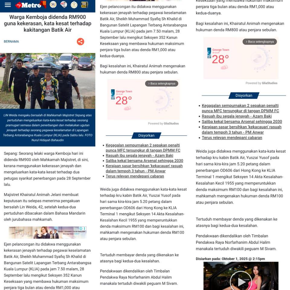 @puteri.ellyshaFlight Batik Air Malaysia dari Hong Kong – Kuala Lumpur OD606, dia mengeluarkan kata-kata kesat terhada seorang pramugari dengan niat untuk menimbulkan kemarahan dan mengganggu ketenteraman semasa penerbangan.