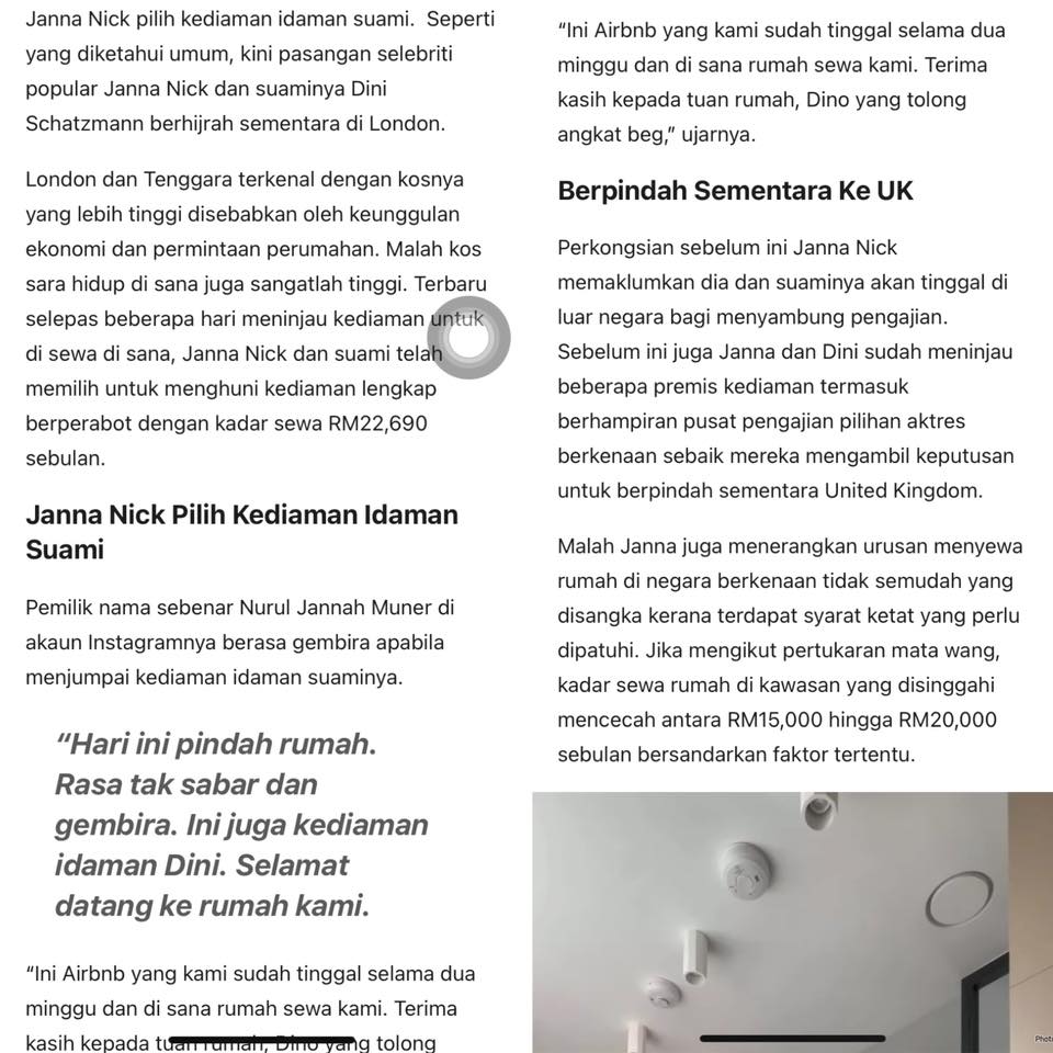 Janna Nick dan suami kongsi kediaman baru di London, harga RM22,690 sebulan, ini kediaman baru Janna Nick