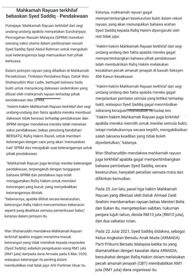 Terkini!! Mahkamah akui terkhilaf bebaskan YB Syed Saddiq. Ini Tindakan terbaru terhdap beliau.. September 22, 2025 by admin