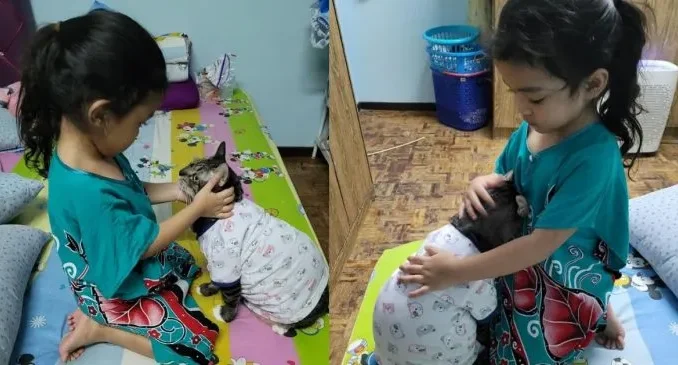 Perkongsian yang mendapat perhatian ramai apabila gelagat anak perempuan dan kucing peliharaan yang manja siap lengkap berpakaian.