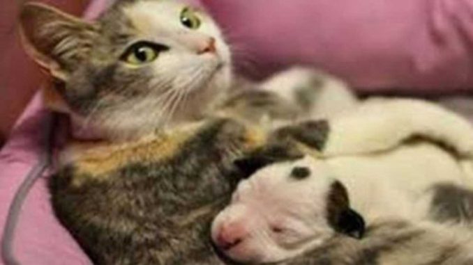 Seekor Kucing Mengadopsi Anjing Pitbull Berusia Satu Hari dan Merawatnya Sampai Dia Kembali Sehat