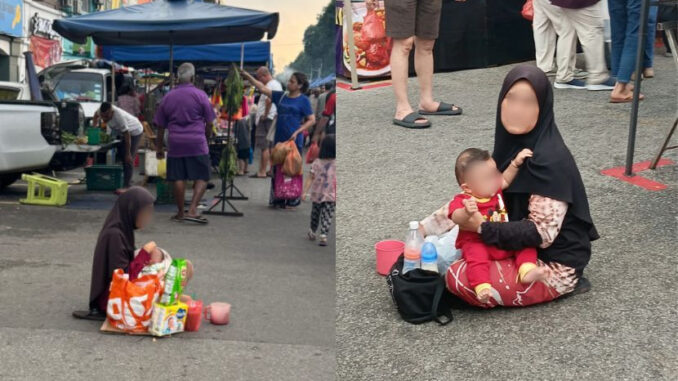 Ia susulan seorang lelaki berkongsi beberapa gambar seorang wantia bersama kanak-kanak dan bayi sedang meminta sedekah di bazar Ramadan Taman Melawati, Kuala Lumpur.