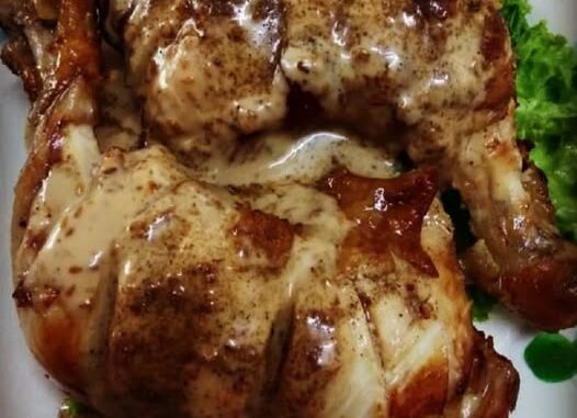 4. Dah masak ayamnya, hidangkan dalam pinggan dan boleh curahkan kewpie tu lagi atas ayam yang dah siap bakar. Selain rasa yang sedap, isi ayam tu lembut je.