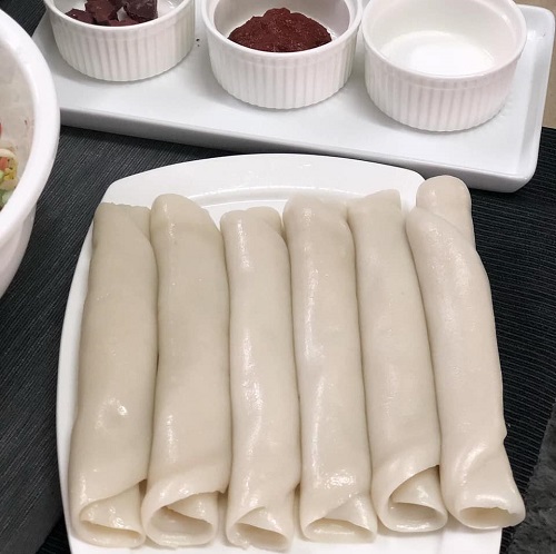 2. Lepastu, masukkan 2 senduk bancuhan ke atas tudung periuk tadi dan kukus sehingga masak. Adunan masak dalam 2-3 minit. Angkat dan biarkan seketika, baru gulung. Ulang langkah sehingga adunan habis. Siap.