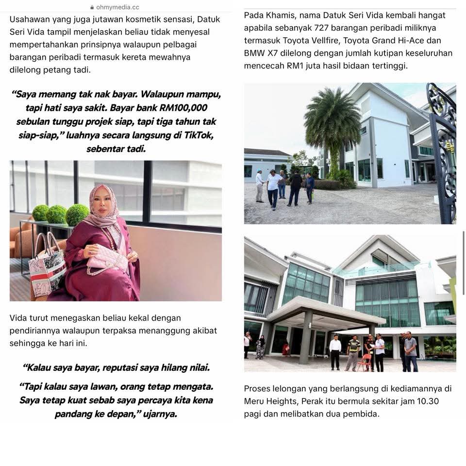 @mstarmalaysia Harta Datuk Seri Vida dilelong dengan jumlah RM1 juta ringgit kepada pembida tertinggi. #mstar251030 #sembangentertainment #fyp #viral #beritaditiktok ♬ original sound – mStar Official